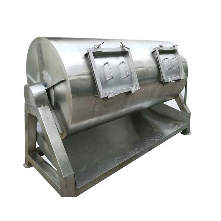 主要是將加工的魷魚絲、肉類制品等原料進行腌制處理。在真空狀態下,物料通過螺旋槳葉的強制循環揉壓、摔打、靜置,加速鹽水分布和吸收,促進肌纖維蛋白的溶解和提取,提高產品質量,降低蒸煮損失,縮短腌制時間,改善肉品品質。將產品放在真空狀態內,可提高調味品進入肉品的速度,并大限度的保持肉內的水分是在真空狀態下,通過筒體轉動進行滾揉,使肉及添加劑溶為一體,以達到肉質鮮嫩,出品率高的目的。
