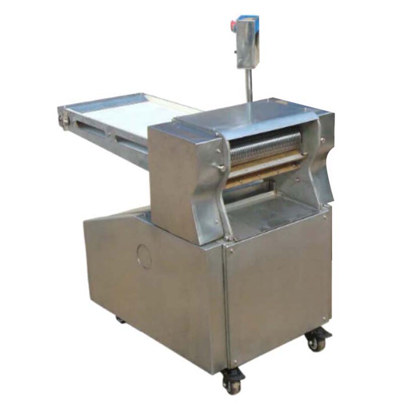 擠絲機是把 2.5mm 厚魷魚板順纖維絲擺放到輸送帶上.經過絲輥相對轉動擠壓形成 2.5mm*2.5mm 方形條狀魷魚絲,魷魚絲的形狀取決于絲輥的規格,具有高產高效、省時省力、操作簡便等優點,該設備設計合理,噪音小,結構緊湊,人性化設計, 工作省力。且便于操作,安全衛生,宜于眼觀。傳動平穩,傳動動力準確高效,還有 噪聲音小、無震動、性能優越等特點。